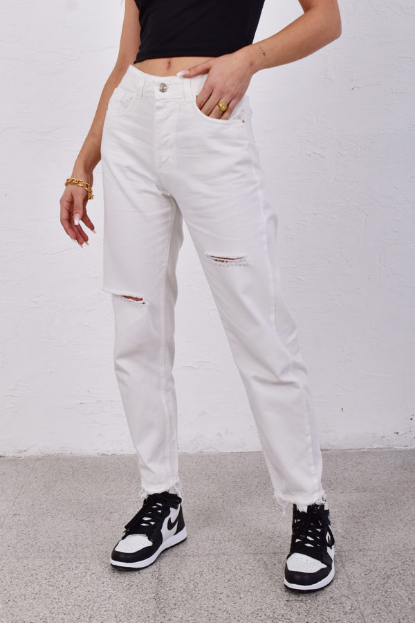 JEAN RIGIDO MOM FIT CRUDO CON ROTURAS