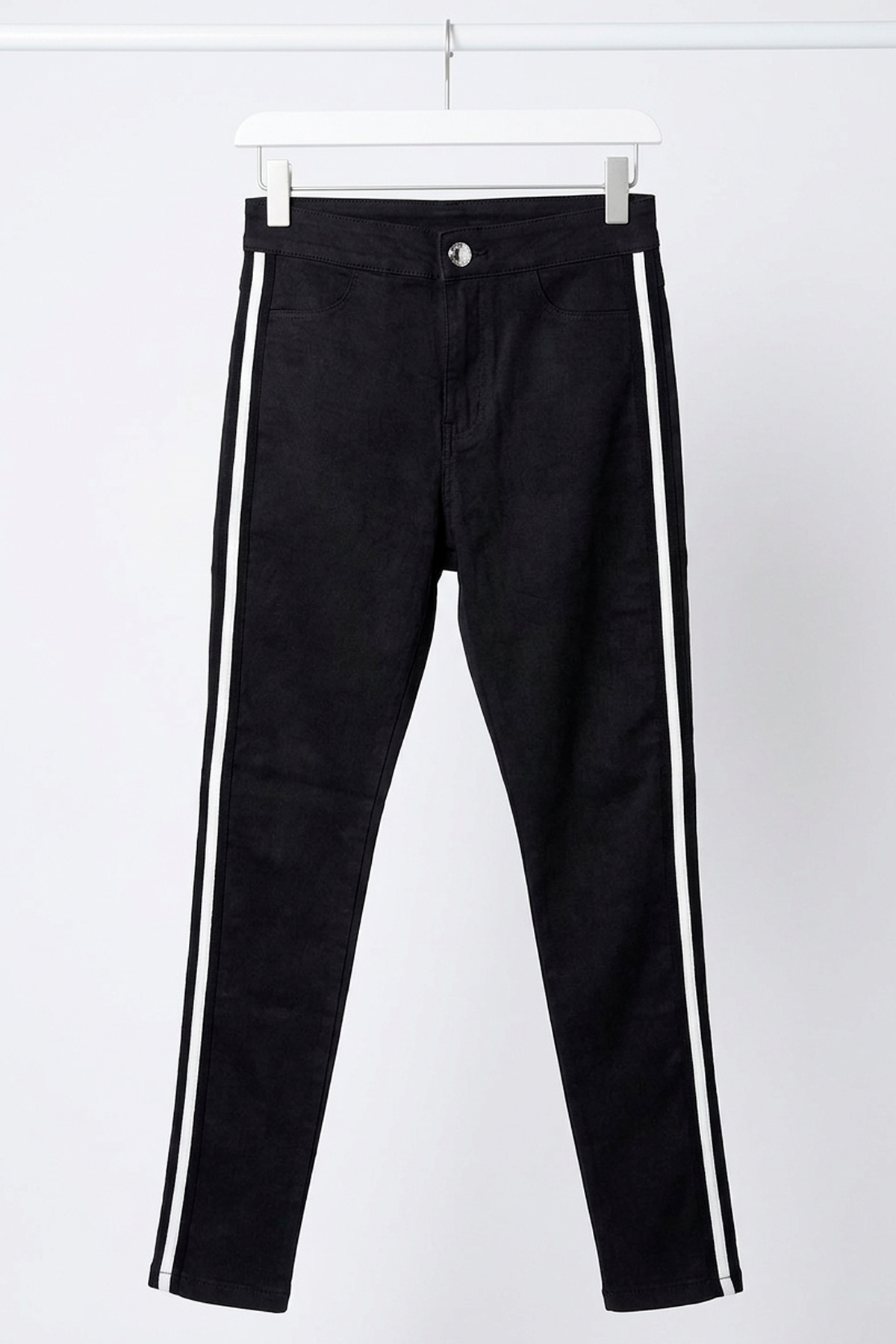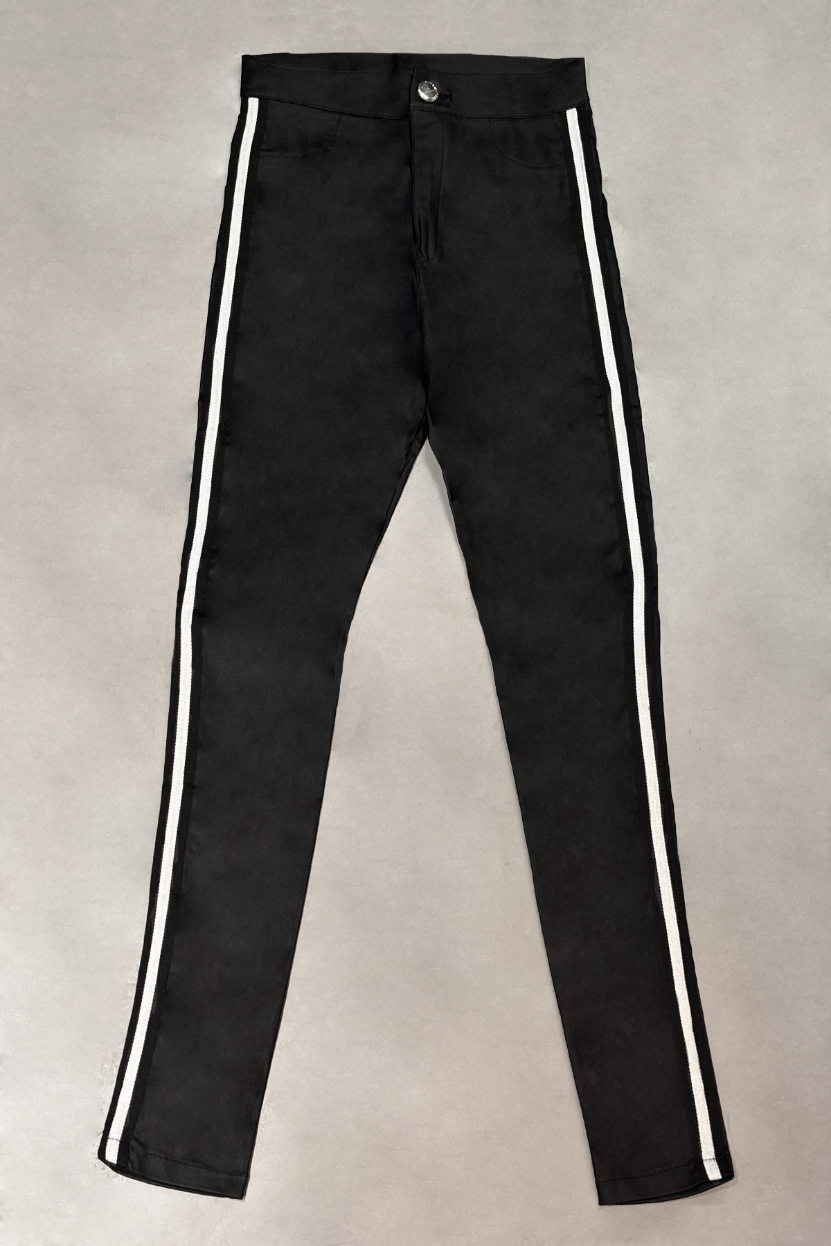 Skinny engomado con galón blanco y negro.